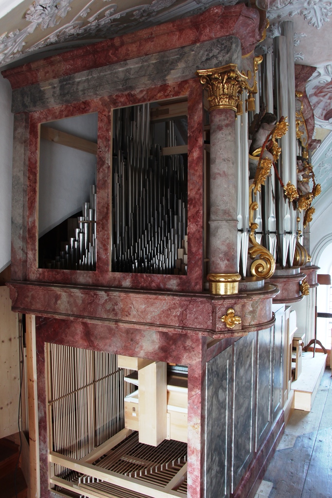 Orgelgehäuse, das vermutlich noch von Balthasar Pröbstl stammte,