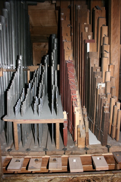 Das Pedal ist fest ans Manual angehängt Der Erbauer der Orgel in Ebing bei Mühldorf ist nicht bekannt. Die Windladen, einige Pfeifen und das Wellenbrett stammen evtl. aus dem 17. Jahrhundert. In ihrer jetzigen Form lässt sich die Orgel etwa in die Mitte des 19. Jahrhunderts einordnen. Bei der Restaurierung wurden vor allem die Windlade und die Traktur der Orgel gründlich restauriert, sowie das Pfeifenwerk überarbeitet. Die Stimmung der Orgel wurde nach Bach-Kellner ausgeführt. Die Tonhöhe ist 448 Hz bei 15°C. Eine umfangreiche Restaurierungsdokumentation ist bei uns erhältlich. |