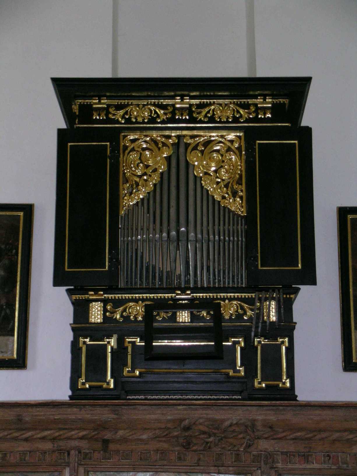 ursprüngliche Schwarz-Gold-Fassung des Orgelgehäuses wurde
