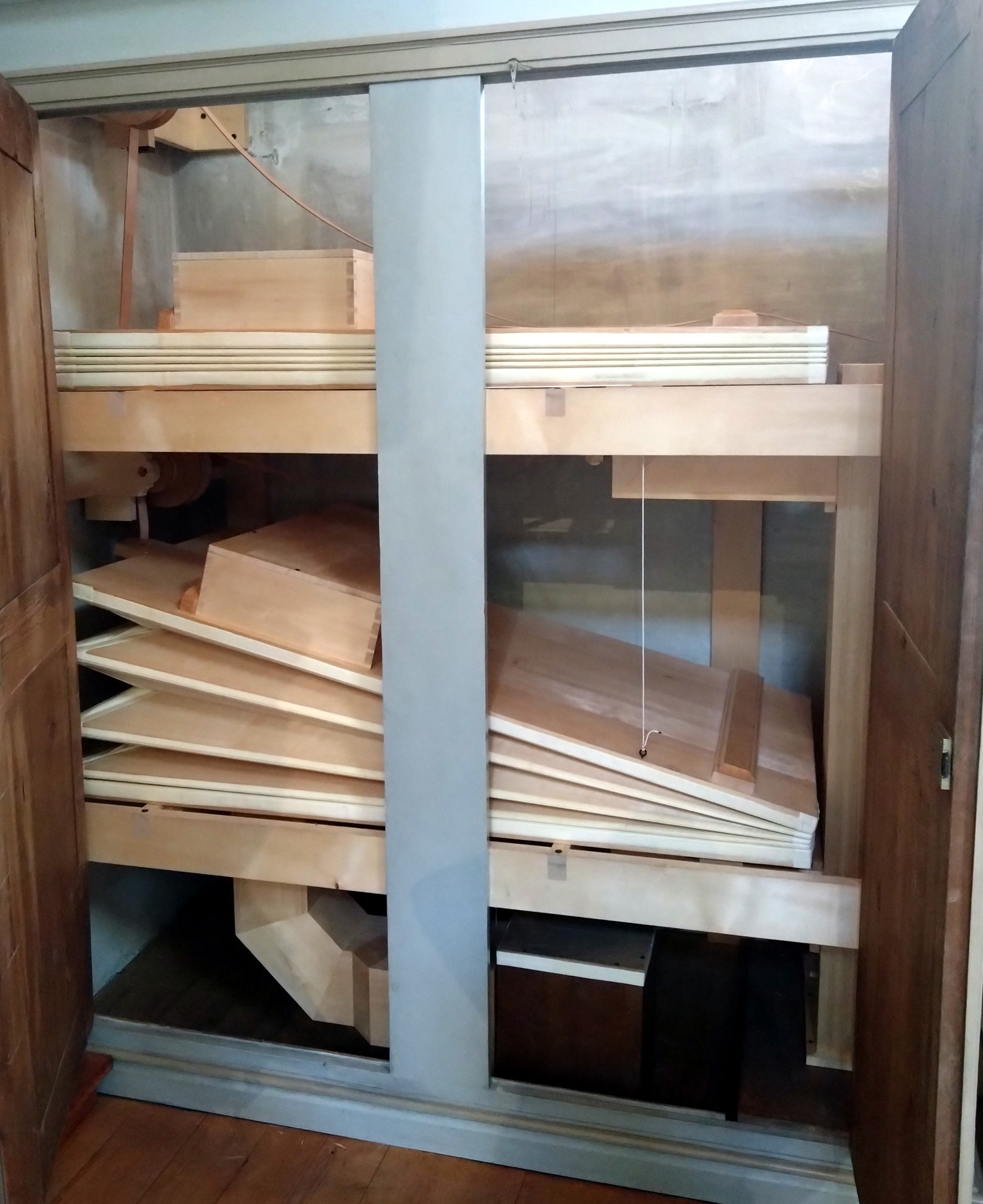 Streicherregisters wurden in einem weiteren Kasten an der Emporenrückseite